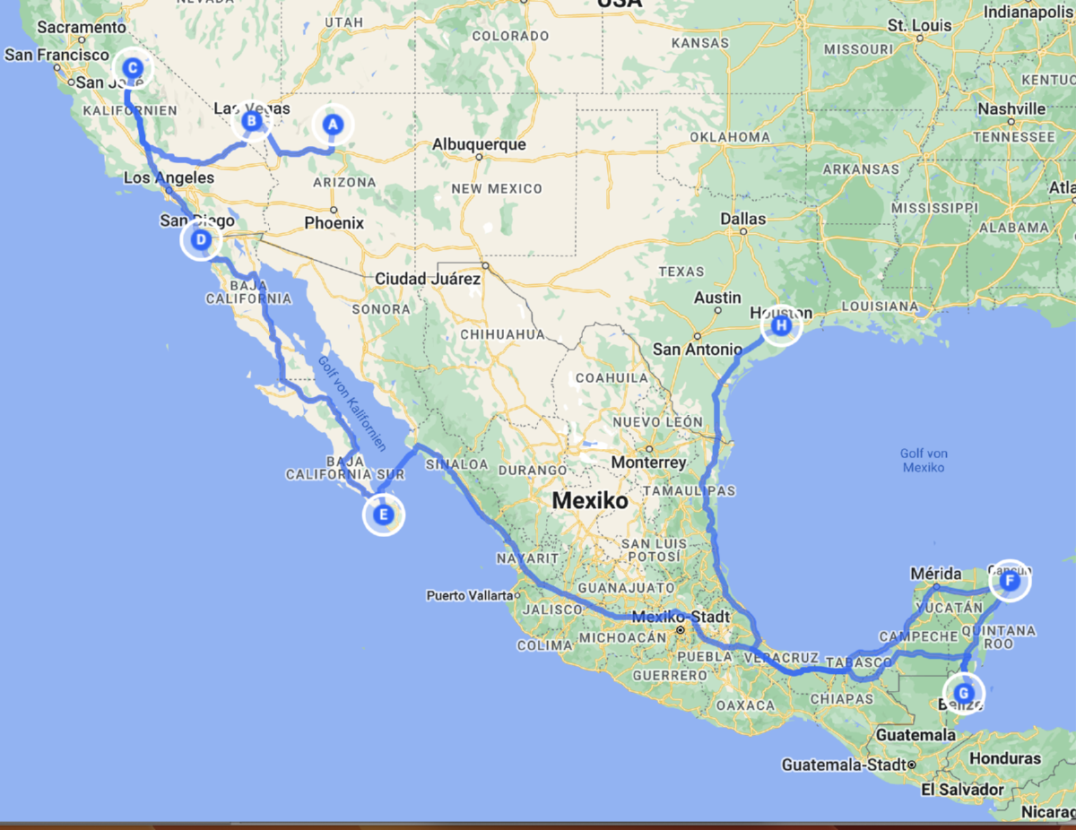 Zu zweit fahren wir dann weiter Richtung Süden zum Joshua Tree NP nach Mexico. Wir werden in der Baja Kalifornien überwintern, von dort weiter zum Mexiko Festland fahren und nach Yucatan. Vermutlich nach Belize geht es zurück zur USA, um von dort aus Baltimore oder Houston im März 24 nach Deutschland zurückzuverschiffen.