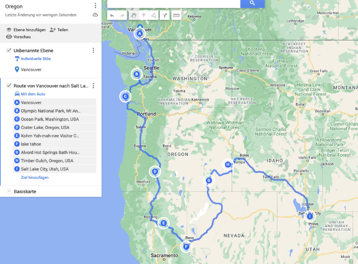 Hier eine grobe Planung unserer Tour, die sich sicher noch dem Wetter, der Strassenbeschaffenheit, Reiseerfahrungen und unserer Laune anpassen wird. Die Screenshots zur Planung wurden mit "google maps" und "my maps" erstellt.