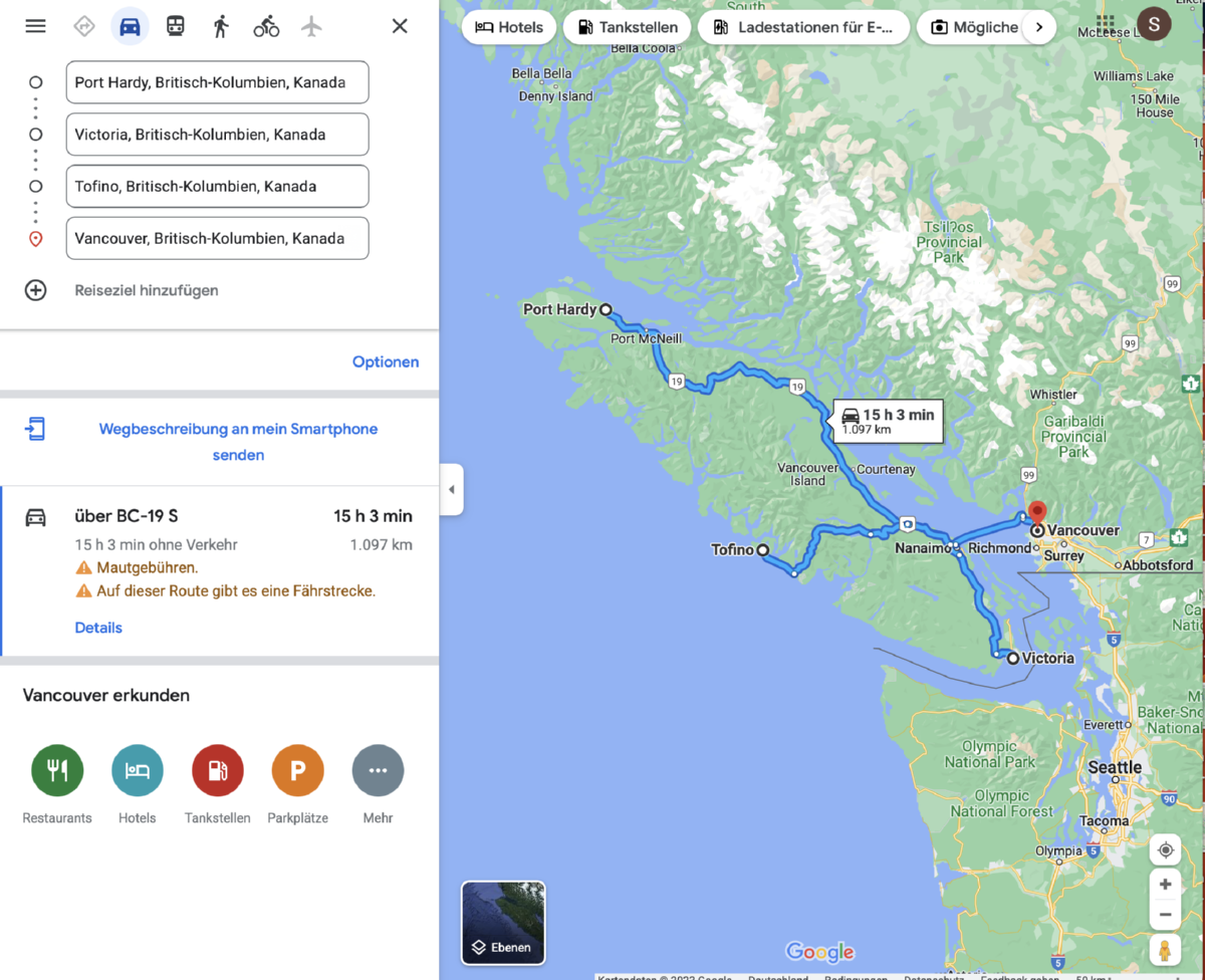 Den Juli planen wir auf Vancouver Island und Vancouver zu verbringen.