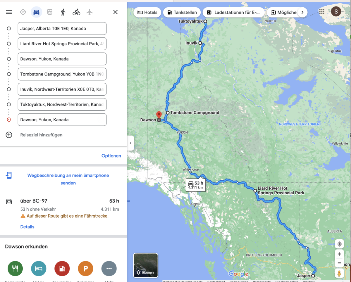 Anfang Juni starten wir je nach Wetterlage und Strassenverhältnisse in Richtung Norden über den Dempster Highway zum Artic Ocean.