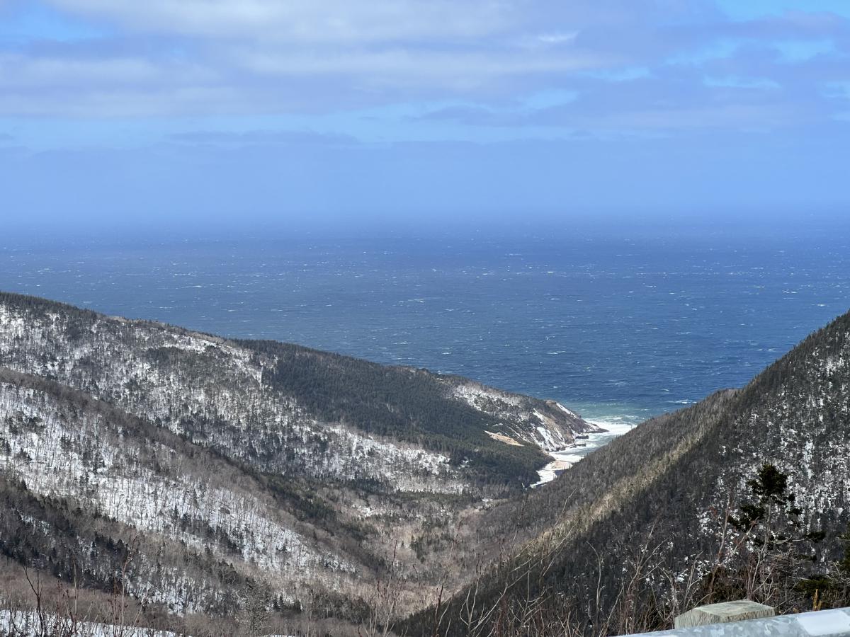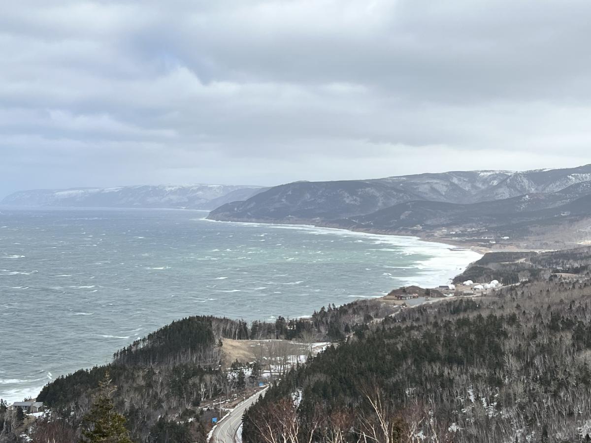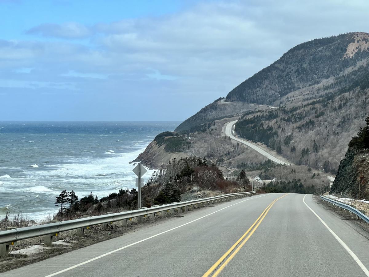Am nächsten Tag starteten wir früh zum Cabot Trail bzw zum Cape Breton Nationalpark - wir wollten den Skyline Trail wandern. Es hatte jedoch dort im Norden noch soviel Schnee, dass es ohne Schneeschuhe nicht möglich war. Damit hatten wir wunderschöne Eindrücke von der Autoroute aus und hielten noch Ende des Parks an einer kleinen Bucht. Die Nacht verbrachten wir wieder am Schlafplatz des Vortages. Bei einer kleinen Tankstelle bekam ich beim Kaffeekauf einen Schlüsselanhänger geschenkt und lernte, dass ein Kauf von sechs Eiern, 6 Duzend Eier bedeutet.