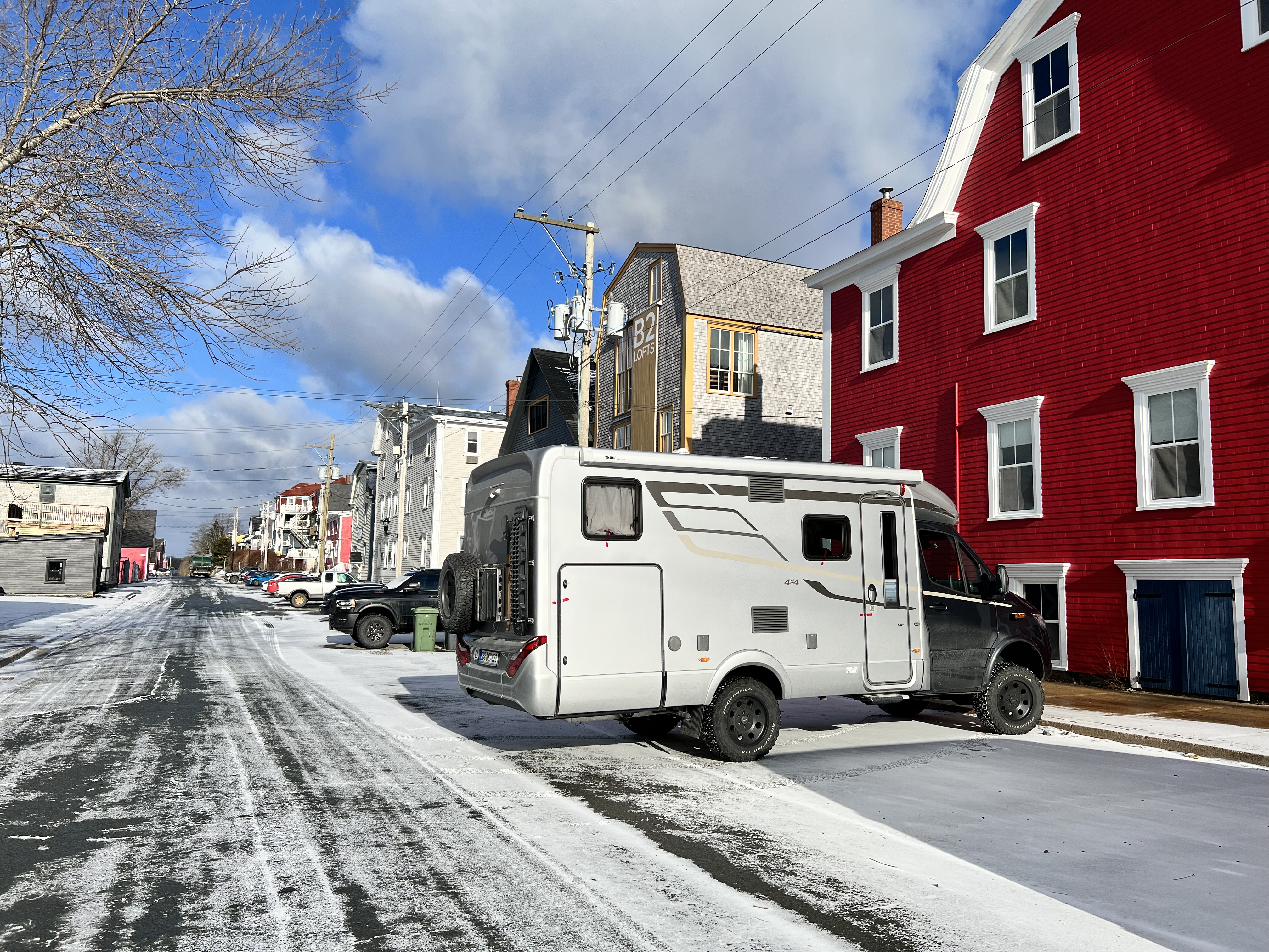 Beide erkältet erreichten wir Halifax. Am nächsten Tag waren wir um 8:30 mit der Agentin der Spedition am Zoll verabredet, um die notwendigen Papiere für die Abholung des Womos im Hafen in Empfang zu nehmen. Diese wurden beim Zoll abstempelt und es ging an den Hafen. Auch da verlief alles unproblematisch :-) Es wurde getankt, der Leihwagen ging zurück, bei Canadian Tyre kamen kanadische Gasflaschen an unser europäisches System und Wasser, das eigentlich für Wasserspender gedacht war, füllten wir in unseren Tank - Wasserhähne aussen sind noch alle abgesperrt. Nach einem ausgiebigen Besuch von Walmart waren wir auch mit Lebensmittel versorgt und kamen k.o. zu unserem Schlafplatz am Hafen. Endlich wurde wieder mit frischen Gemüse und wenig Fett selbst gekocht. Halifax ist deutlich rauer als Toronto und erinnert an Norwegen. Den nächsten Tag bummelten wir die Waterfront entlang und durch die Stadt …