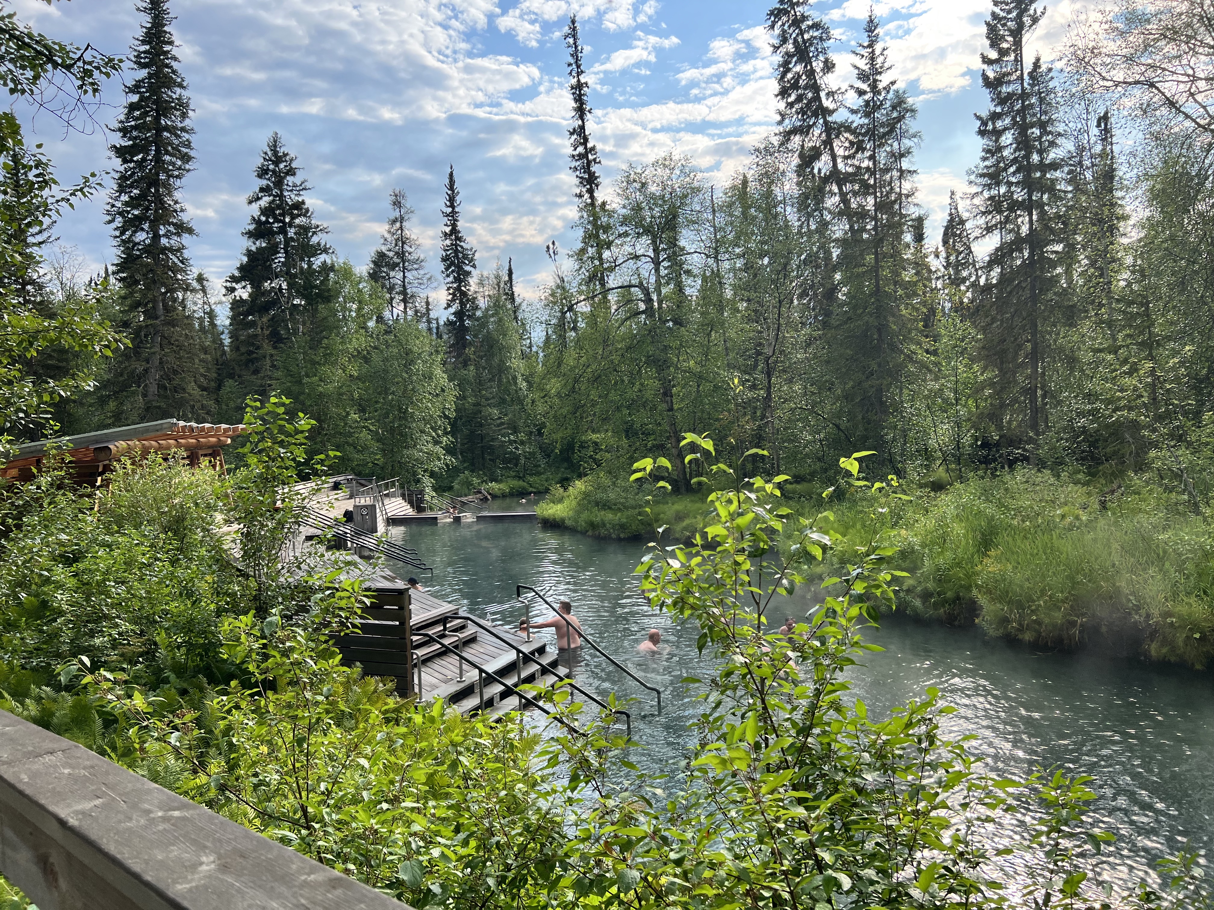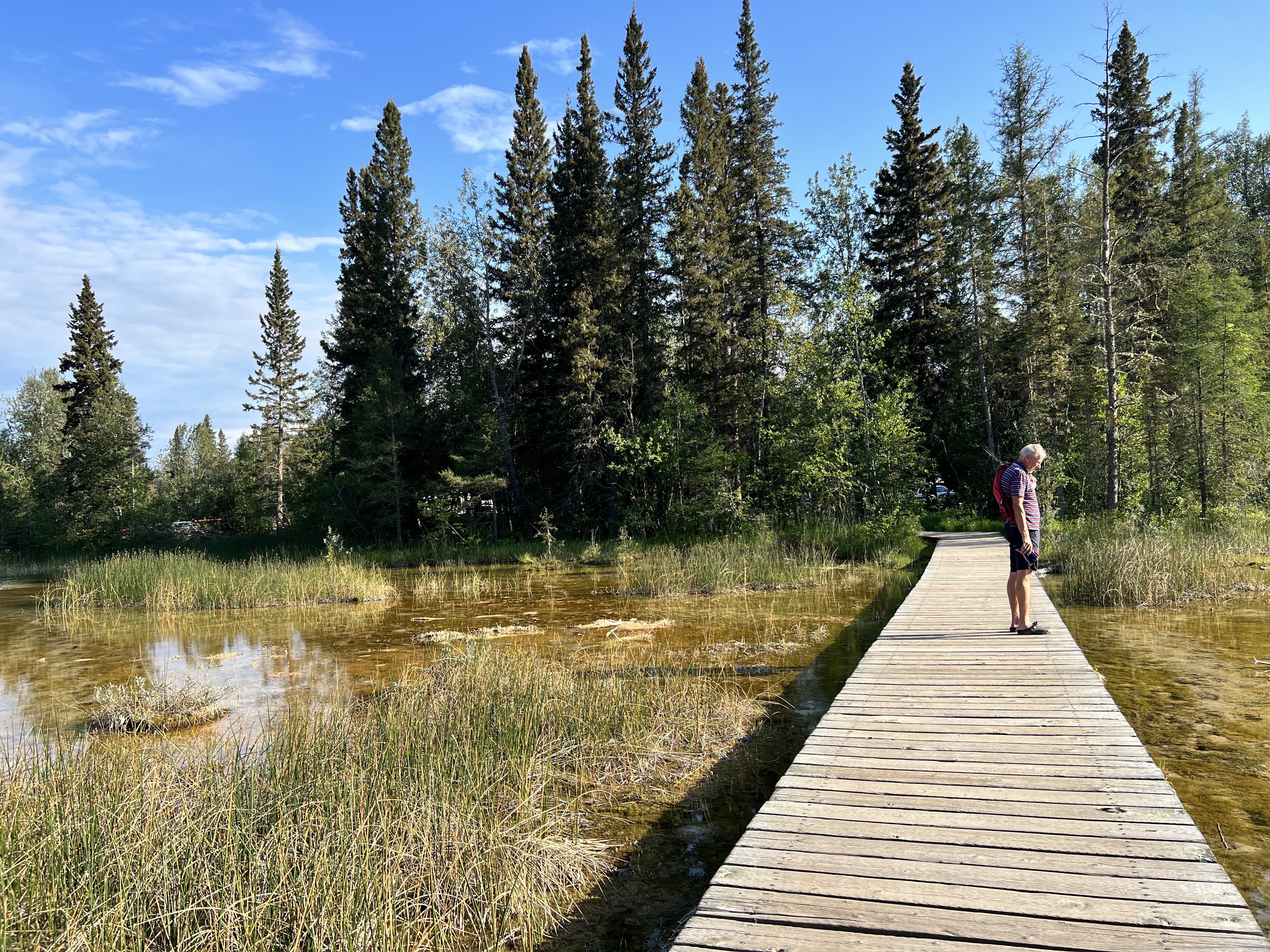 Bei den Liard Hot Springs bleiben wir drei Tage und genießen die warmen Quellen. Wieder ein Mal sind wir ohne Internet. Eigentlich sollte man WIFI im benachbarten Resort kaufen können, nur ist das nicht stabil und der Techniker hat 300 km Anreise. Es kann dauern - Genauso in Whitehorse: die Pumpe für den Car Wash war kaputt, nach 6 Wochen war sie schon geliefert, aber lag noch in der Stadt .... Hier gehen die Uhren noch anders und man ist gewohnt zu warten.