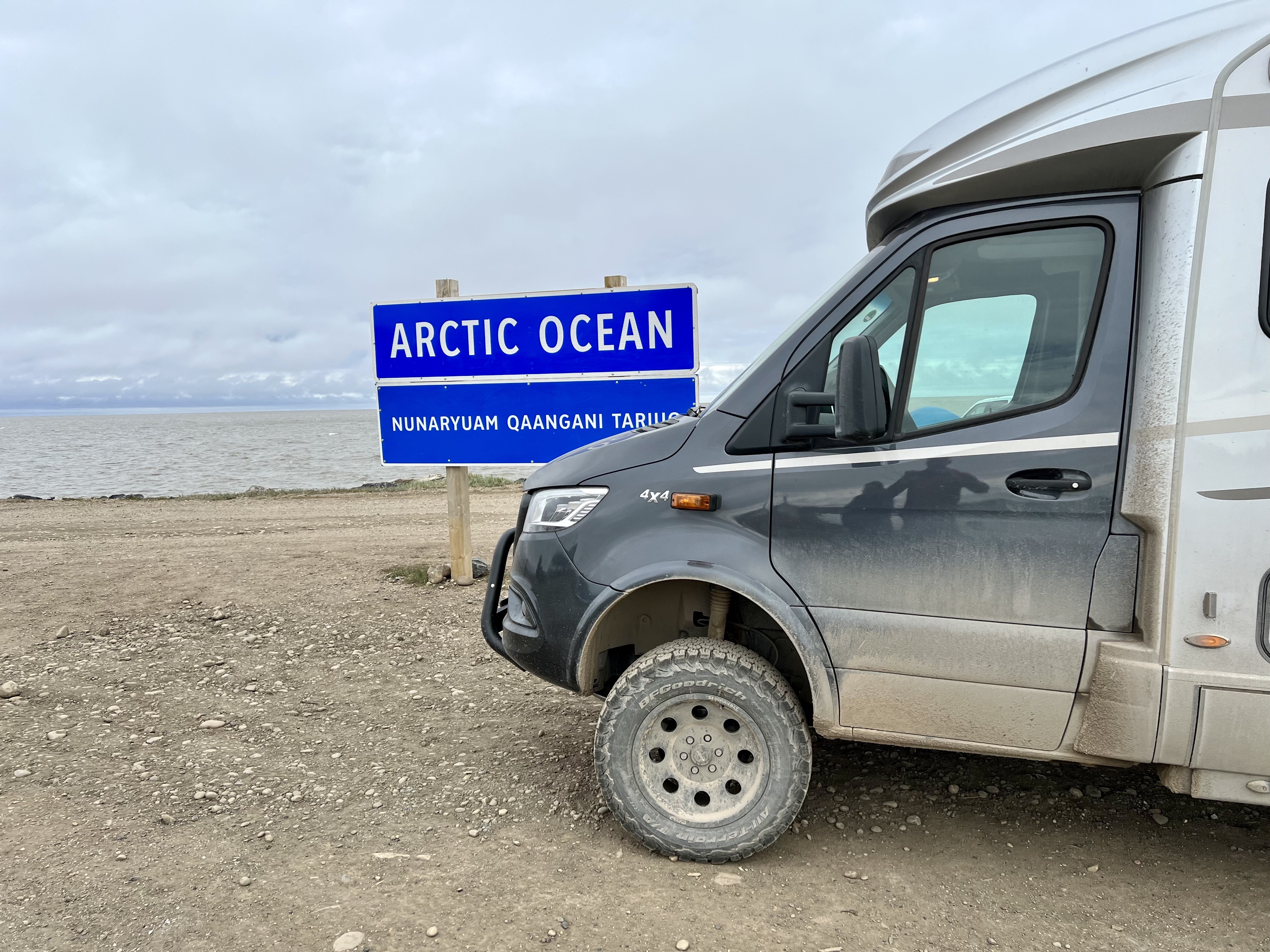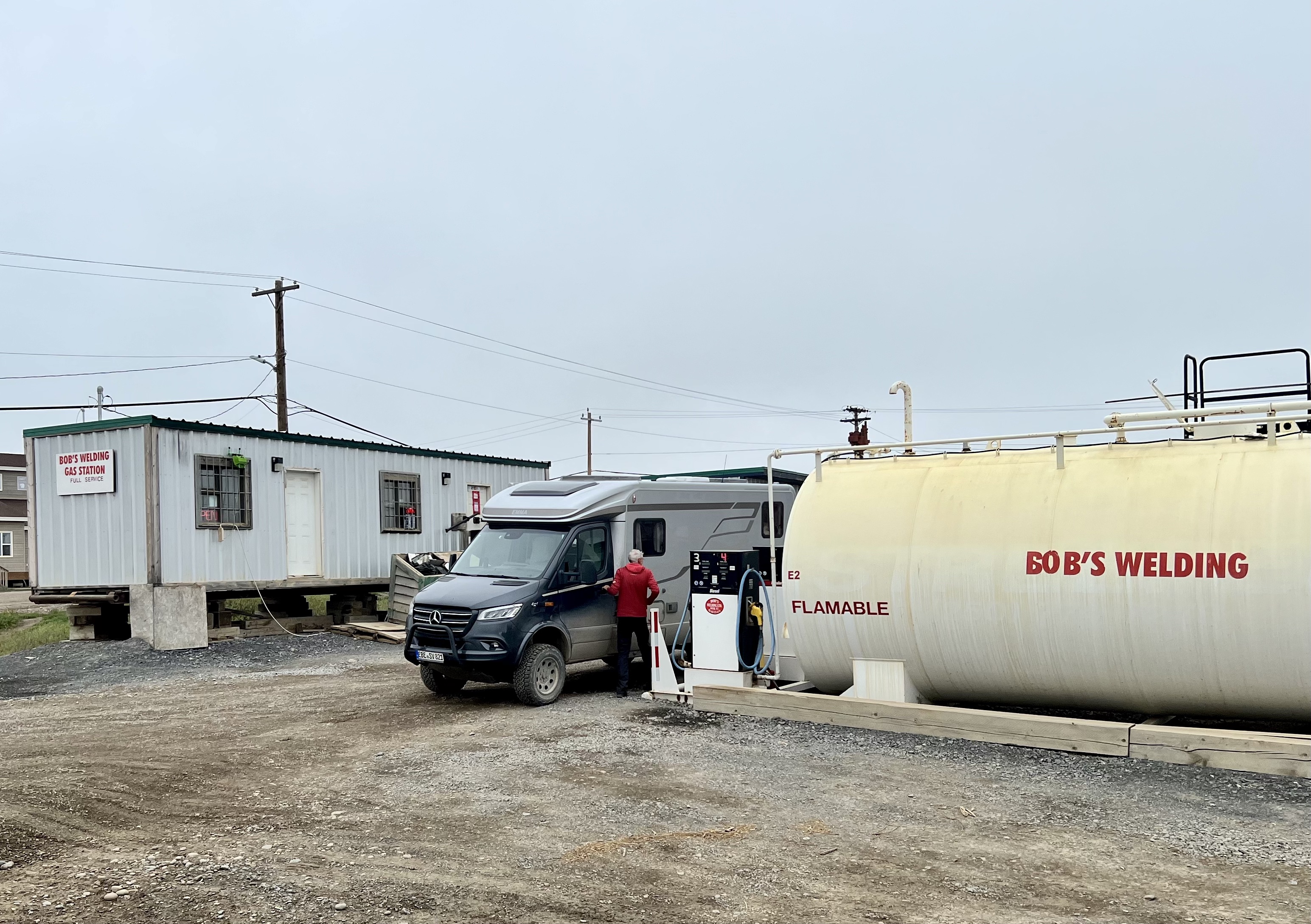 Nach drei Tagen über dem Dempster Highway erreichen wir den Tuktoyaktuk und den Arctic Ocean. Wie immer nutzen wir jede Tankstelle, die sich bietet.
