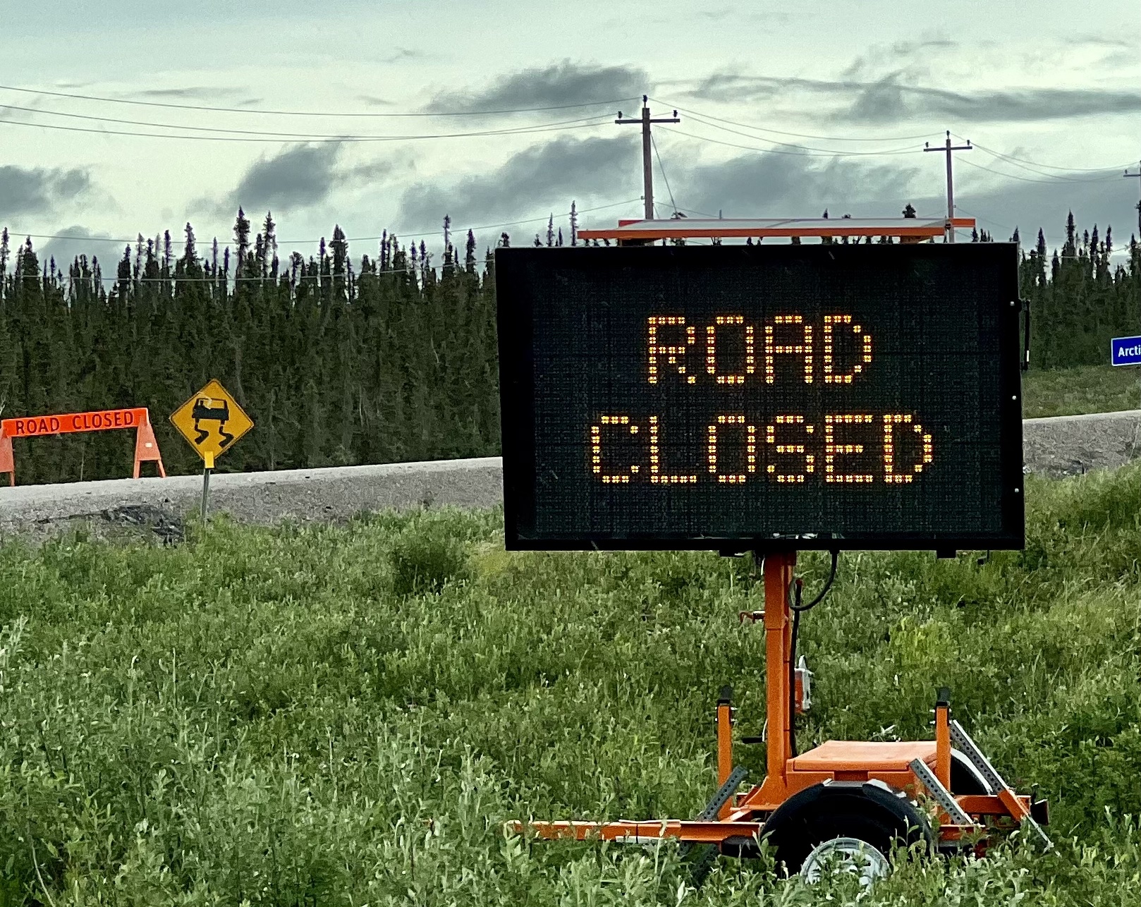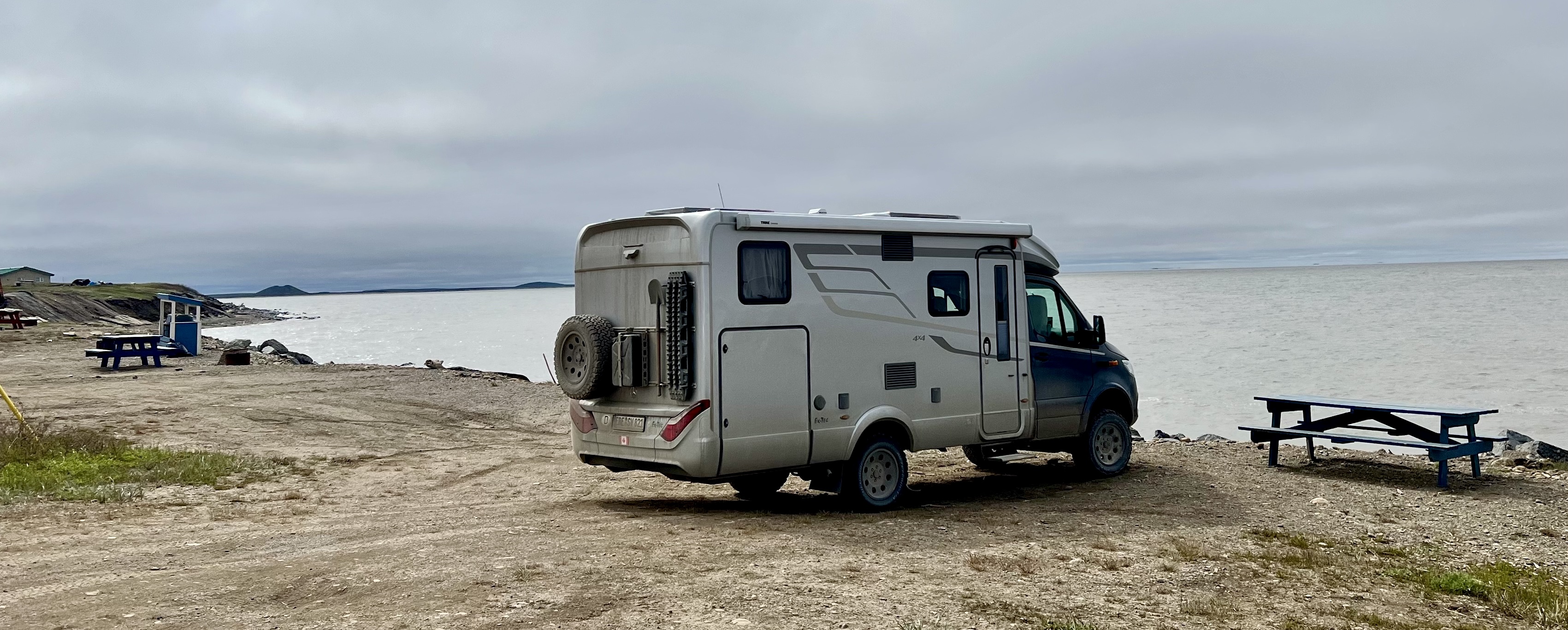 Nach Inuvik ist die Strasse für einen Tag gesperrt. Wir übernachten in Inuvik und fahren am nächsten Morgen weiter.
