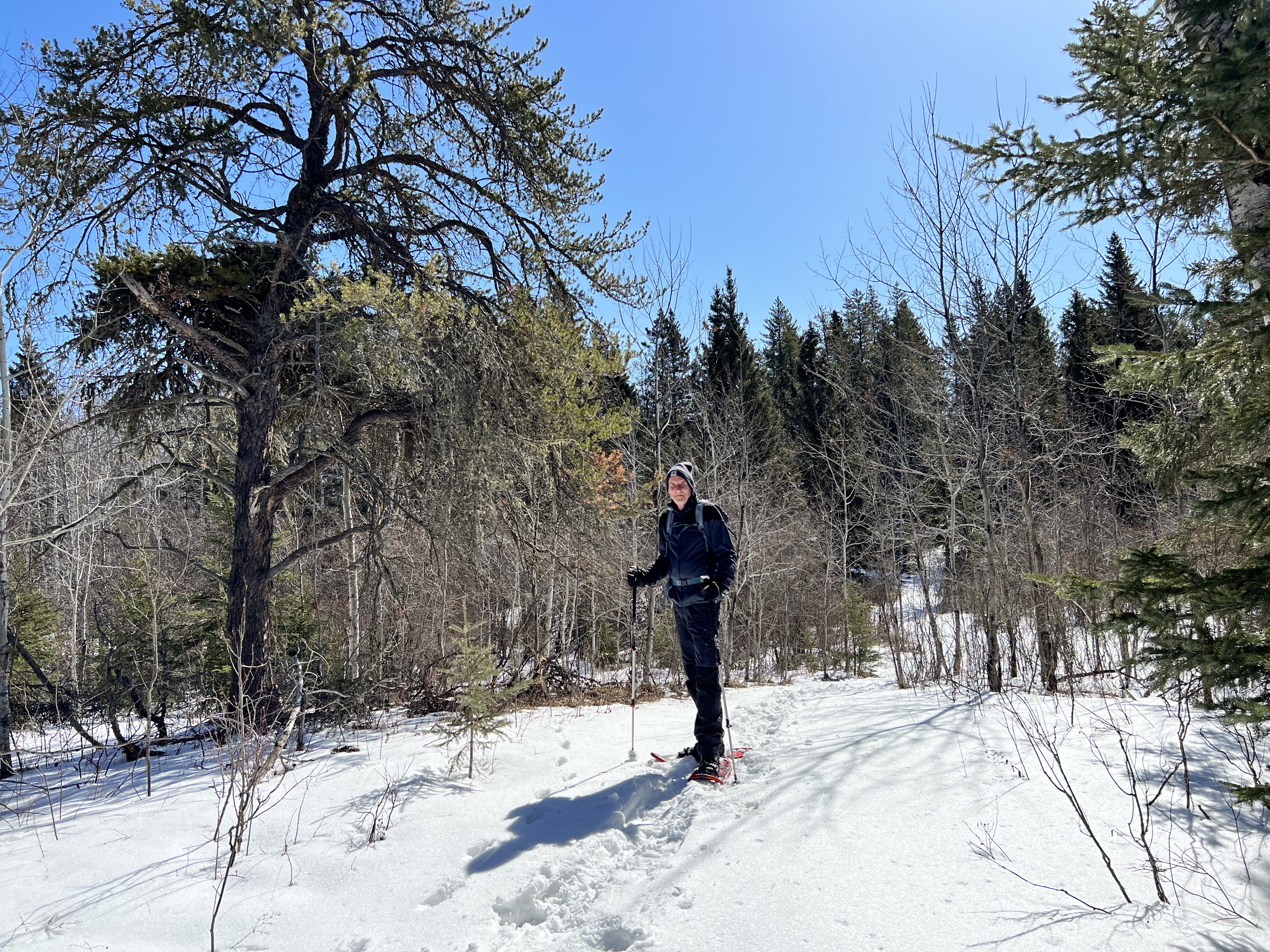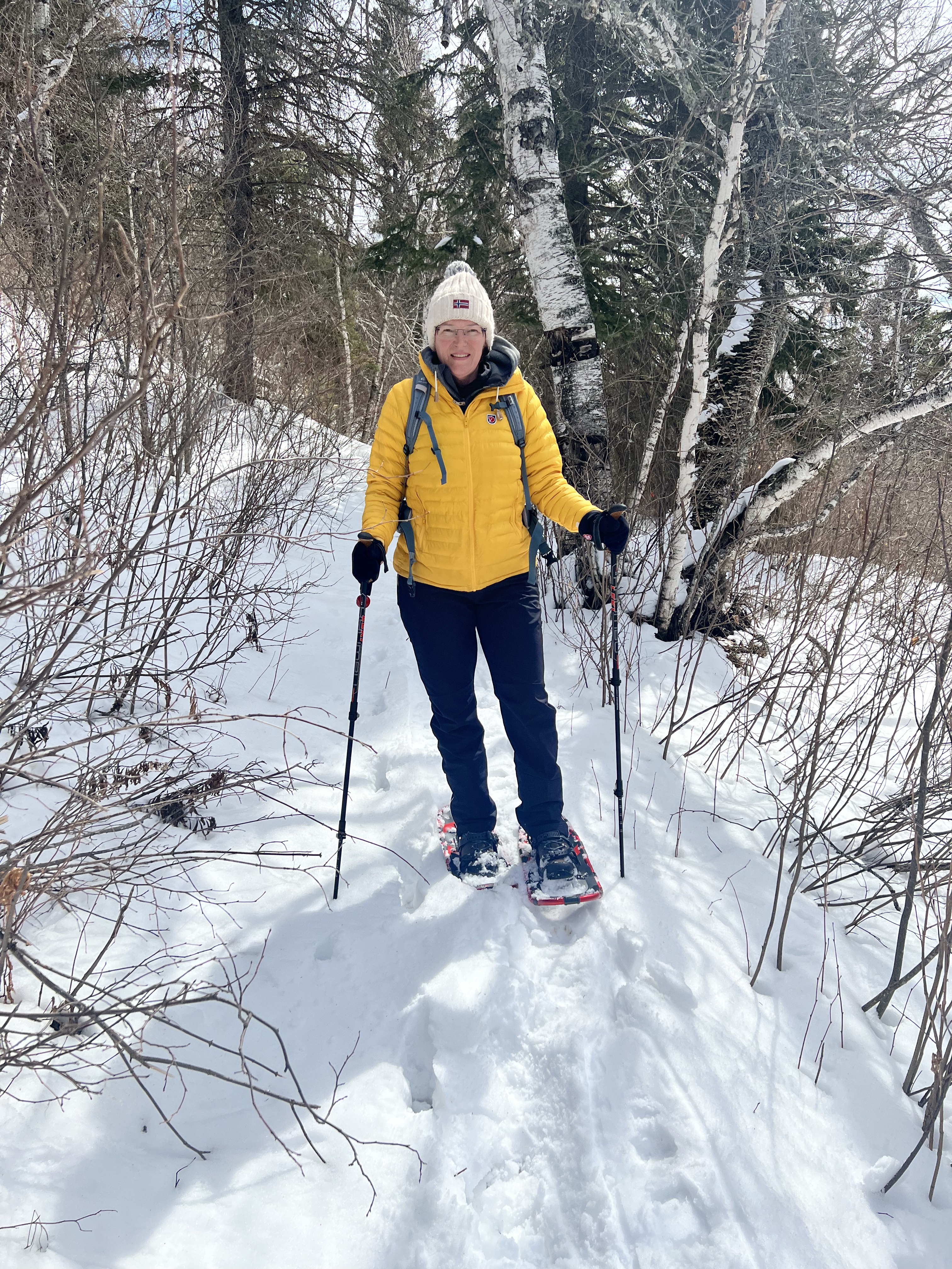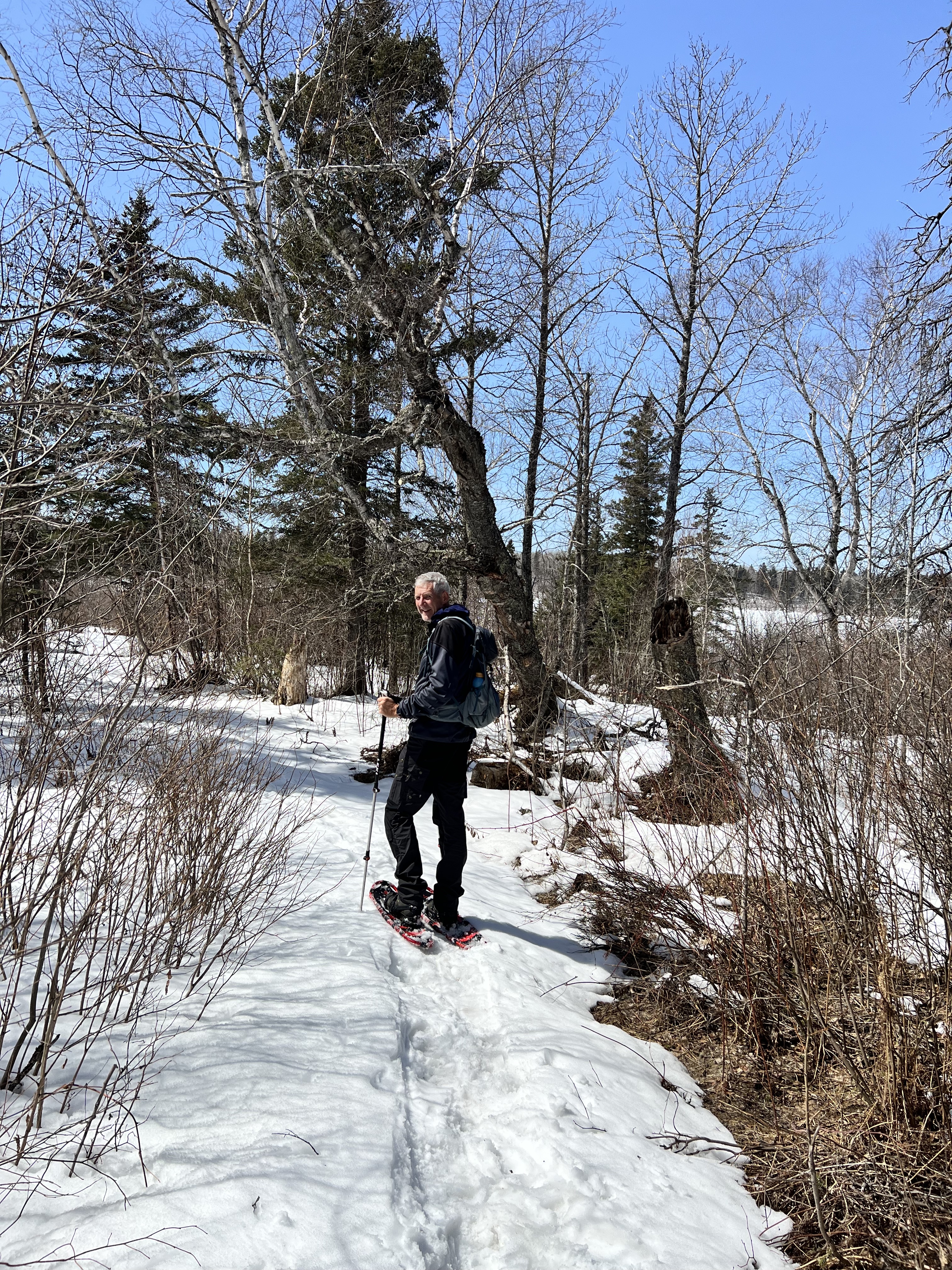 Dort wandern wir den Bead Lake Trail. Die Schneeschuhe und Bear Bells kommen zum Einsatz, wir gehen in unberührte Natur und checken über Maps out, dass wir auf dem Trail sind. Und vor uns war doch schon einer unterwegs: unsere Fährtenrecherche deuten auf einen Wolf oder Kojoten hin, die auch hier leben sollen.