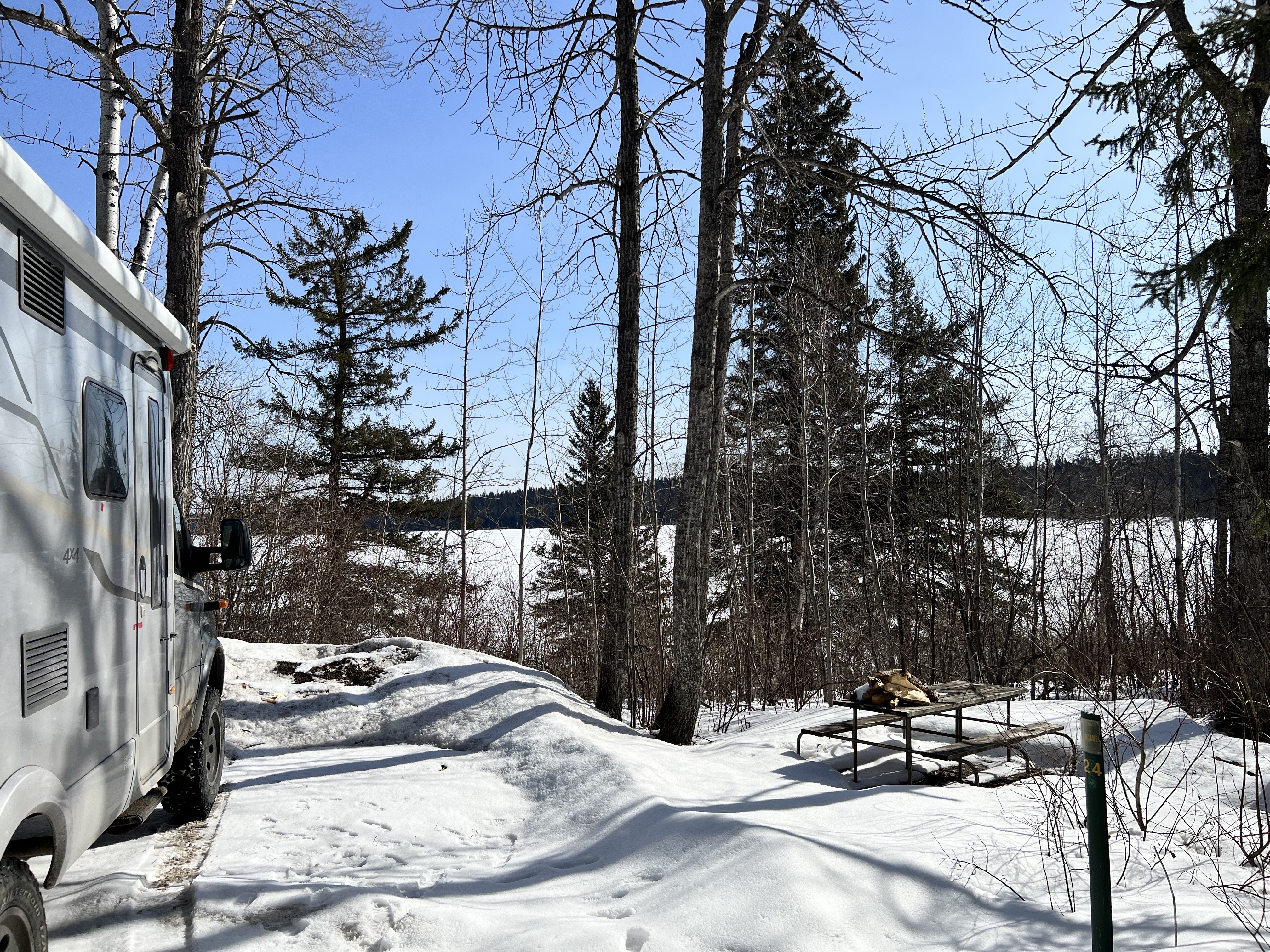 Die erste Übernachtung war hinter dem Park in einer Seitenstraße. Am nächsten Tag war das Visitor Center geöffnet und wir sind jetzt die stolzen Besitzer des Annual Passes für die Nationalparks und konnten am Wasagaming Campingplatz einen Platz (627) buchen. Die nächsten beiden Tage verbrachten wir am Moon Lake Campsite (Platz 24) und wanderten von dort aus den Moon Lake Trail.