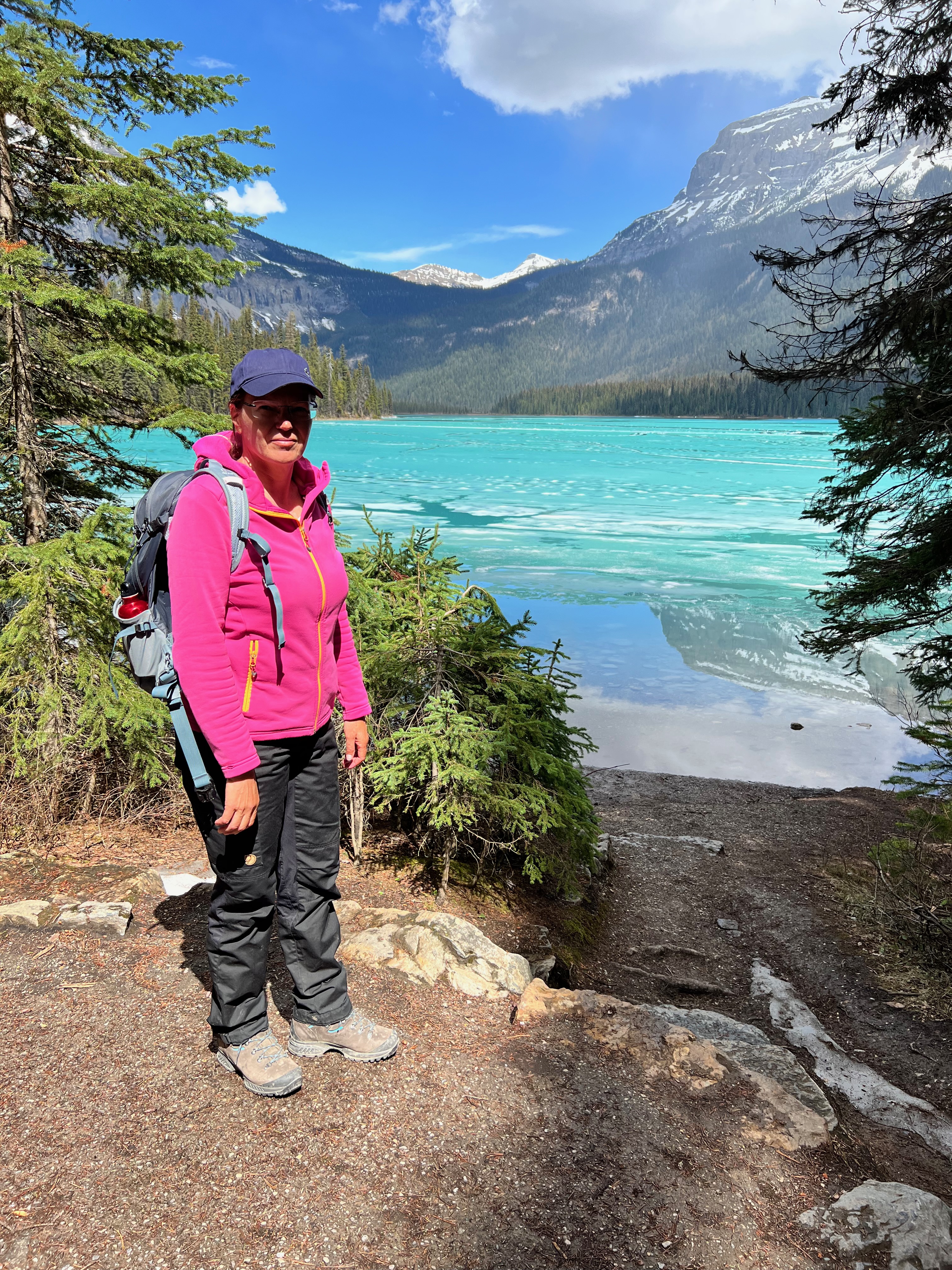 Nach der Ruhe- und Waschpause in Golden geht es in den Yoho Nationalpark. Die Berge waren beeindruckend und der Emerald See überwältigend. Der See war fast aufgetaut und damit konnten wir die Farbe des Wassers mit den Schneebergen im Hintergrund bestaunen. Viele Wanderungen und Straßen im Yoho Nationalpark sind wegen Lawinengefahr noch immer gesperrt. Das, was zugänglich ist, ist wunderschön, nicht so überlaufen und jetzt im Mai noch ohne Mücken.